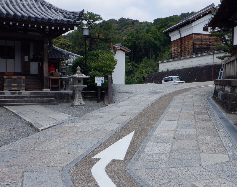 茶わん坂の行き止まりを右側にここが、清水寺最大の難所。私は以前、簡易車椅子で介助者なしで上り切った経験があり、単独で上って行ったのですが、三分の二程度上ったところで警報音と共に、新型の簡易電動車椅子が止まってしまいました。多分新型は安全装置が早く作動するように設定されていたのかもしれません。偶然通りかかったカップルの参拝者にお願いしたところ、快く坂が緩やかになるところまで押してくださいました。