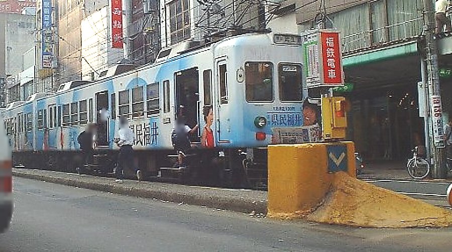初めて見た福井鉄道は道路の中央に電停がある路面電車で、電停へ上がるためのスロープは無くさらに一般車両のような大きさの電車の外側に扉と連動して自動的に設置される2段の階段(ほかに名称があるのかもしれませんが、私には階段にしか見えませんでした)さらに車内段差が一段あり足腰が健全な方以外は乗車は難しい、この階段を車いすで担ぎ乗せてもらうなど想像だに出来ない、最も車いすでの利用が困難な鉄道路線をみせていただいたと感じました。