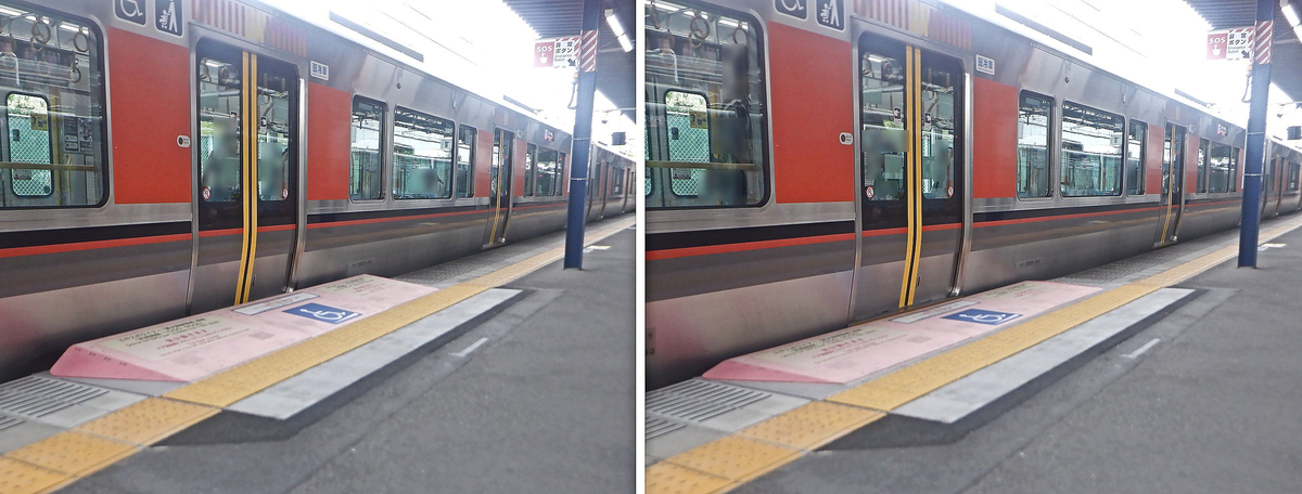 JR桜島駅の可動スロープは島式ホームの左右に1ヶ所づつでした。